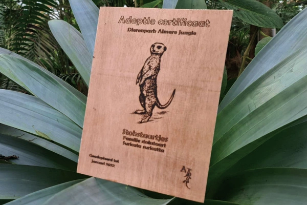 • Certificaat met afbeelding van jouw adoptiedier of adoptieplant gelaserd op hout